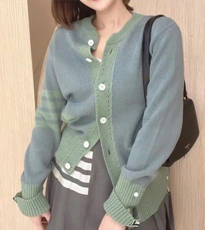 • [홍콩명품.THOME BROWNE] 톰브라운 24SS 로고 여성 4바 라운드넥 니트 가디건 (3컬러), BM12824, TB1, 홍콩명품의류,구매대행,온라인명품