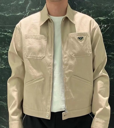 [홍콩명품,PRADA] 프라다 24SS 삼각로고 데님 카라 자켓 (베이지), BM13134, KB, 홍콩명품의류,구매대행,온라인명품 > 남자의류