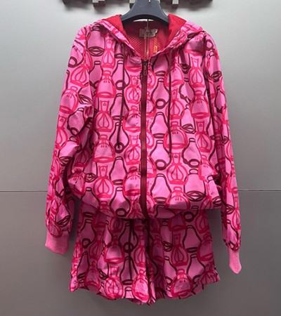 [홍콩명품.Hermes] 에르메스 24SS 로고 패턴 여성 후드 집업 자켓 + 미니 쇼츠 반바지 상하의 세트 (핑크), BM13369, SG, 홍콩명품의류,구매대행,온라인명품 요약정보 및 구매