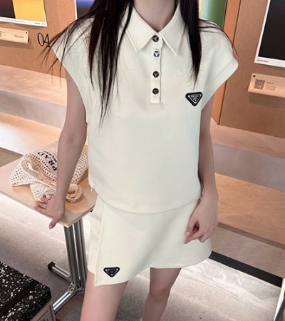 • [홍콩명품,PRADA] 프라다 24SS 삼각로고 여성 슬리브리스 셔츠 + 미니 쇼츠 반바지 상하의 세트 (2컬러), BM14064, TBG, 홍콩명품의류,구 매대행,온라인명품