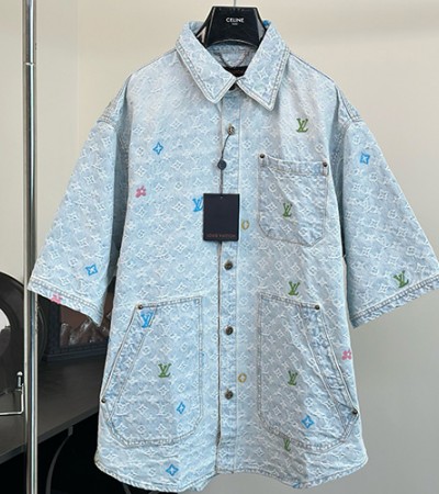 • [홍콩명품.LOUIS VUITTON] 루이비통 24SS 로고 모노그램 데님 반팔 남방 셔츠 + 쇼츠 반바지 상하의 세트, BM14230, JU, 홍콩명품의류,구매대행,온라인명품