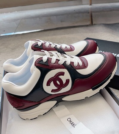 • [홍콩명품.CHANEL] 샤넬 24SS 로고 여성 레더 가죽 스니커즈 운동화 (화이트-블랙-와인), SE3361, SMS, 명품스니커즈,운동화,구두,로퍼,하이탑,신발