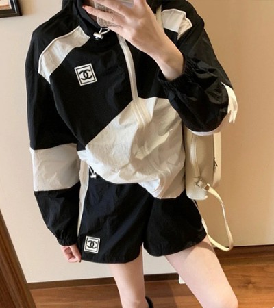 • [홍콩명품.CHANEL] 샤넬 23SS 로고 여성 바람막이 자켓 + 미니 쇼츠 반바지 상하의 세트 (2컬러), BM14446, GHH, 홍콩명품의류,구매대행,온라인명품