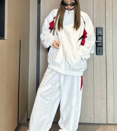 • [홍콩명품.BALENCIAGA] 발렌시아가 24SS 스포티로고 트레이닝 집업 자켓 + 팬츠 바지 상하의 세트 (화이트), BM15674, JU, 홍콩명품의류,구매대행,온라인명품