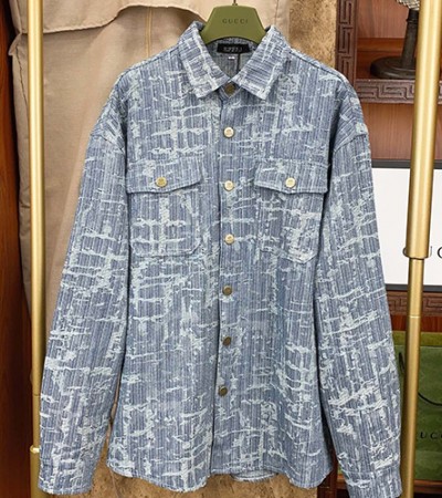 • [홍콩명품.Gucci] 구찌 24SS 로고 패턴 데님 남방 셔츠, BM16748, S1F, 홍콩명품의류,구매대행,온라인명품