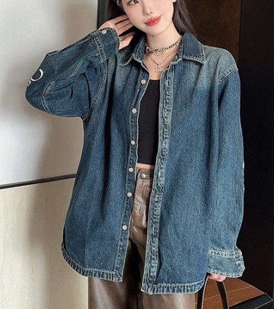 • [홍콩명품.LOEWE] 로에베 24SS 로고 여성 데님 남방 셔츠, BM17384, TBG, 홍콩명품의류,구매대행,온라인명품