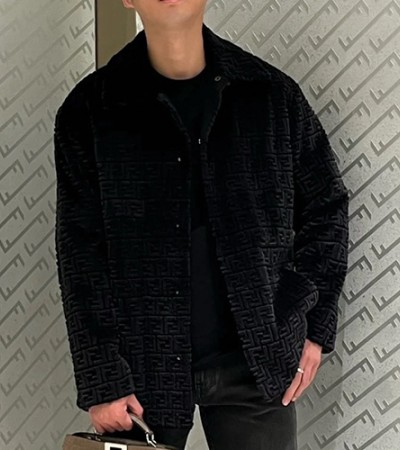 [홍콩명품,FENDI] 펜디 25SS 로고 패턴 퍼 자켓 (블랙), BM18167, TOM, 홍콩명품의류,구매대행,온라인명품 > 남자의류