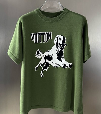 [홍콩명품.LOUIS VUITTON] 루이비통 25SS 로고 그래픽 니트 반팔 티셔츠 (그린), BM19398, JU, 홍콩명품의류,구매대행,온라인명품 > 남자의류