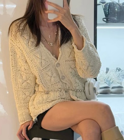 • [홍콩명품.CHANEL] 샤넬 25SS 로고 패턴 여성 오버핏 V넥 가디건 자켓 (2컬러), BM19577, 13C, 홍콩명품의류,구매대행,온라인명품