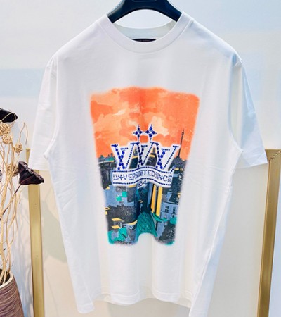 • [홍콩명품.LOUIS VUITTON] 루이비통 25SS 로고 그래픽 프린트 반팔 티셔츠 (화이트), BM19680, YS, 홍콩명품의류,구매대행,온라인명품