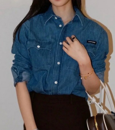 • [홍콩명품,MIU MIU] 미우미우 25SS 로고 여성 데님 남방 셔츠, BM19836, 13C, 홍콩명품의류,구매대행,온라인명품
