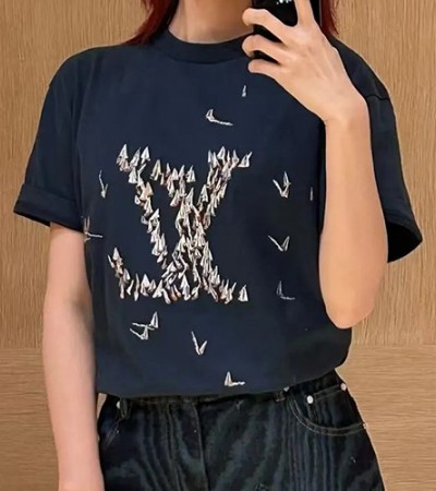[홍콩명품.LOUIS VUITTON] 루이비통 25SS 로고 그래픽 자수 반팔 티셔츠 (네이비), BM20707, KB, 홍콩명품의류,구매대행,온라인명품 요약정보 및 구매