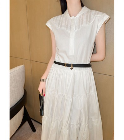 [홍콩명품,PRADA] 프라다 25SS 로고 여성 벨티드 슬리브리스 롱 원피스 (화이트), BM21132, TBG, 홍콩명품의류,구매대행,온라인명품 > 여성몰
