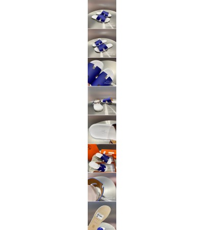 [홍콩명품.Hermes] 에르메스 25SS 로고 이즈미르 레더 가죽 슬리퍼 (블루-화이트), SE5212, GHS, 명품스니커즈,운동화,구두,로퍼,하이탑,신발 > 신발