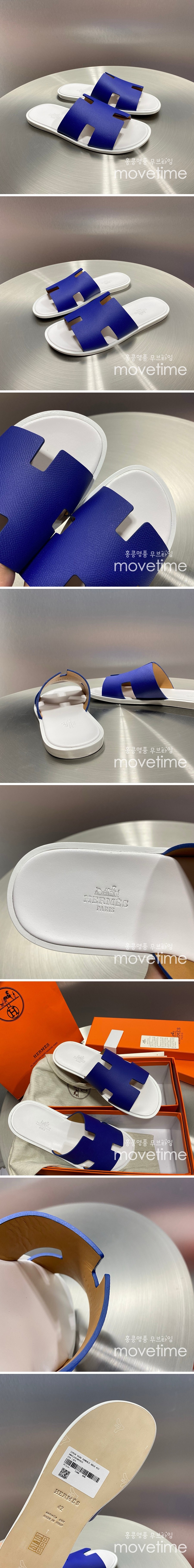 [홍콩명품.Hermes] 에르메스 25SS 로고 이즈미르 레더 가죽 슬리퍼 (블루-화이트), SE5212, GHS, 명품스니커즈,운동화,구두,로퍼,하이탑,신발 요약정보 및 구매