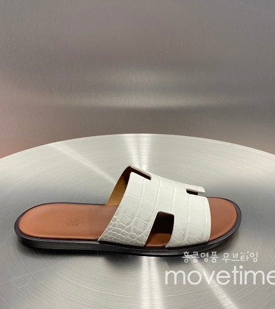 [홍콩명품.Hermes] 에르메스 25SS 로고 이즈미르 레더 가죽 슬리퍼 (화이트-브라운), SE5219, GHS, 명품스니커즈,운동화,구두,로퍼,하이탑,신발 > 신발