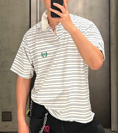[명품레플리카.BALENCIAGA] 발렌시아가 25SS 로고 스트라이프 카라 폴로 반팔 티셔츠 (화이트), BM21208, KB, 홍콩명품의류,구매대행,온라인명품 요약정보 및 구매