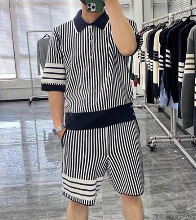[홍콩명품.THOME BROWNE] 톰브라운 25SS 로고 4바 스트라이프 카라 니트 상하의 (2컬러), BM21411, TB1, 명품레플리카,미러급,온라인쇼핑몰사이트 > 남자의류