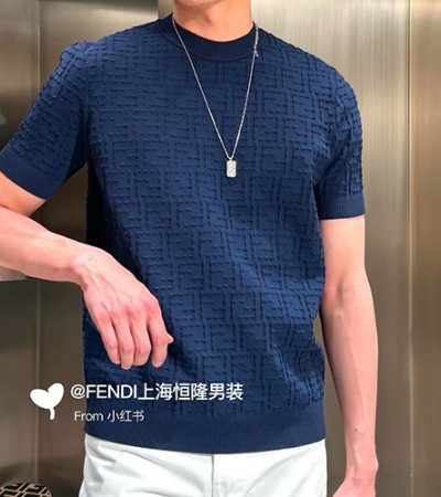 [홍콩명품,FENDI] 펜디 25SS 로고 패턴 니트 반팔 티셔츠 (2컬러), BM21445, JU, 명품레플리카,미러급,온라인쇼핑몰사이트 > 남자의류