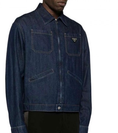 [홍콩명품,PRADA] 프라다 25SS 삼각로고 데님 카라 집업 자켓, BM21452, JU, 명품레플리카,미러급,온라인쇼핑몰사이트 > 남자의류