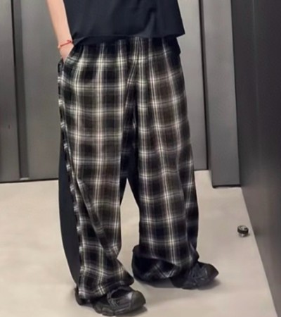 [홍콩명품.BALENCIAGA] 발렌시아가 25SS 로고 체크패턴 오버핏 팬츠 바지 (블랙), BM21490, JU, 명품레플리카,미러급,온라인쇼핑몰사이트 > 남자의류