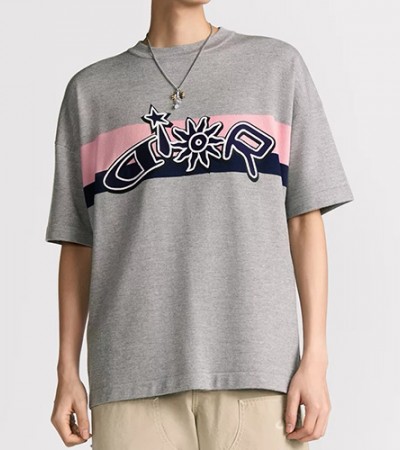• [홍콩명품,Christian Dior] 디올 25SS 로고 그래픽 니트 반팔 티셔츠 (그레이), BM21690, JU, 레플리카의류,미러급사이트