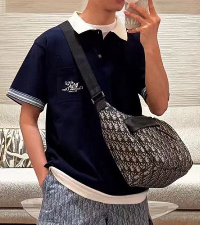 • [홍콩명품,Christian Dior] 디올 25SS 로고 자수 카라 폴로 반팔 티셔츠 (네이비), BM21694, JU, 레플리카의류,미러급사이트