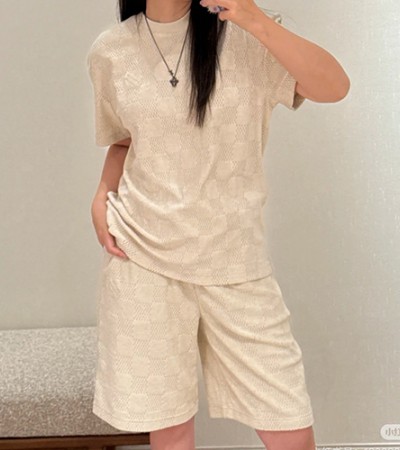 • [홍콩명품.LOUIS VUITTON] 루이비통 25SS 로고 다미에 반팔 티셔츠 + 쇼츠 반바지 상하의 세트 (3컬러), BM21910, KB, 레플리카의류,미러급사이트