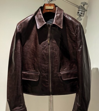 • [홍콩명품,PRADA] 프라다 25SS 삼각로고 레더 가죽 카라 자켓 (브라운), BM22055, TOM, 레플리카의류,미러급사이트