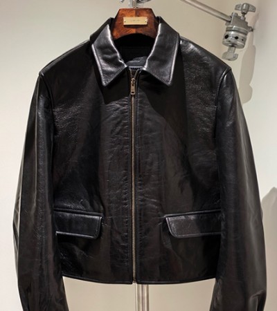 • [홍콩명품,PRADA] 프라다 25SS 삼각로고 레더 가죽 카라 자켓 (블랙), BM22056, TOM, 레플리카의류,미러급사이트