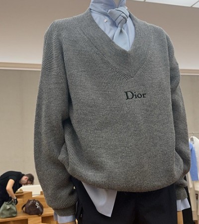 • [홍콩명품,Christian Dior] 디올 25SS 로고 자수 V넥 캐시미어 니트 스웨터 (그레이), BM22110, JL, 레플리카의류,미러급사이트