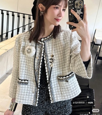 • [홍콩명품.CHANEL] 샤넬 25SS 로고 여성 라운드넥 트위드 자켓 (화이트), BM22194, SS, 레플리카의류,미러급사이트