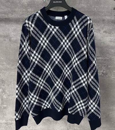 • [홍콩명품.Burberry] 버버리 25SS 로고 체크패턴 니트 스웨터 (네이비), BM22206, KK, 레플리카의류,미러급사이트