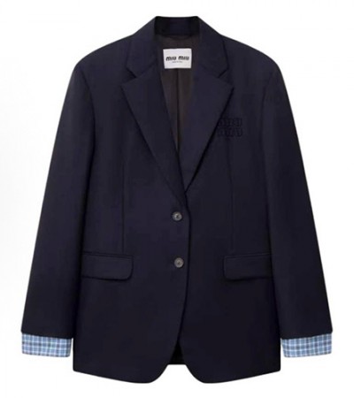 • [홍콩명품,MIU MIU] 미우미우 25SS 로고 남여 정장 수트 자켓 (네이비), BM22341, KK, 레플리카의류,미러급사이트