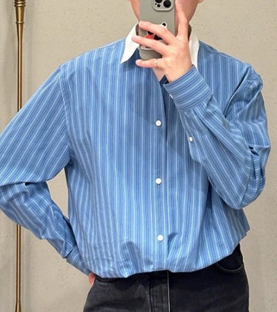 • [홍콩명품.LOEWE] 로에베 25SS 로고 스트라이프 남방 셔츠 (블루), BM22565, KB, 레플리카의류,미러급사이트