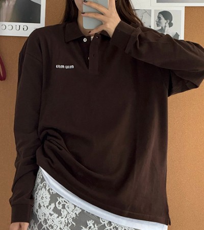[홍콩명품,MIU MIU] 미우미우 25SS 로고 자수 카라 폴로 긴팔 티셔츠 (브라운), BM22597, JL, 레플리카의류,미러급사이트 요약정보 및 구매