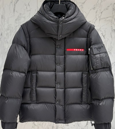 • [홍콩명품,PRADA] 프라다 25SS 로고 소매 탈부착 구스다운 후드 패딩 자켓 (3컬러), BM22656, KSM, 레플리카의류,미러급사이트