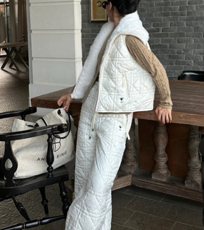 • [홍콩명품,Christian Dior] 디올 25SS 로고 여성 퀄팅 솜패딩 조끼 베스트 + 솜패딩 팬츠 바지 상하의 세트 (화이트), BM22694, TBG, 레플리카의류,미러급사이트