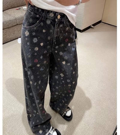 • [홍콩명품.CHANEL] 샤넬 25SS 로고 패턴 여성 오버핏 데님 팬츠 진 청바지 (블랙), BM22708, TBG, 레플리카의류,미러급사이트