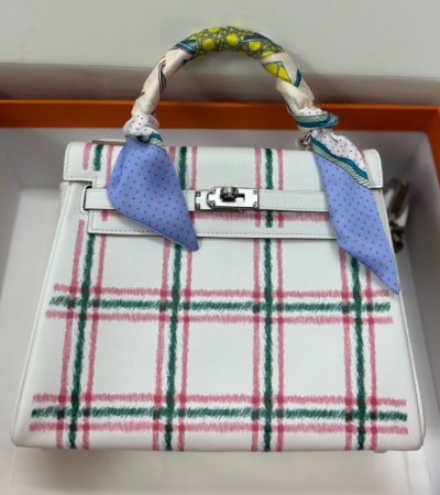 • [홍콩명품.Hermes] 에르메스 25SS 로고 Kelly 25 Tartan Light  토트백 핸드백 (화이트-은장), BGM5233, 홍콩명품가방,명품쇼핑몰,크로스백,핸드백,구매대행