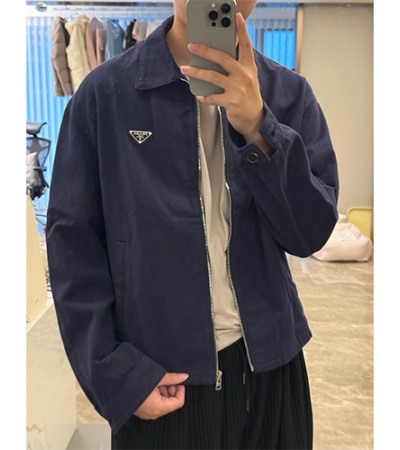 • [홍콩명품,PRADA] 프라다 25SS 삼각로고 데님 카라 자켓 (네이비), BM22717, JL, 레플리카의류,미러급사이트