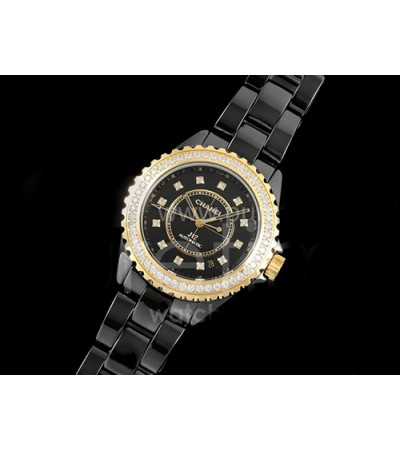 • [홍콩명품.CHANEL] 샤넬 J13 38mm 블랙 세라믹 베젤 옐로우골드 다이아몬드 베젤 블랙 다이얼