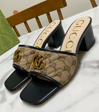[홍콩명품.Gucci] 구찌 25SS 로고 여성 GG수프림 6.5cm 굽 샌들 슬리퍼 (카라멜-블랙), SE5710, GHS, 명품스니커즈,운동화,구두,로퍼,하이탑,신발 > 여성몰