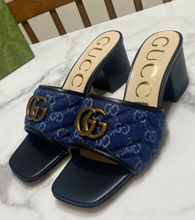 [홍콩명품.Gucci] 구찌 25SS 로고 여성 GG수프림 6.5cm 굽 샌들 슬리퍼 (데님-블랙), SE5711, GHS, 명품스니커즈,운동화,구두,로퍼,하이탑,신발 > 여성몰
