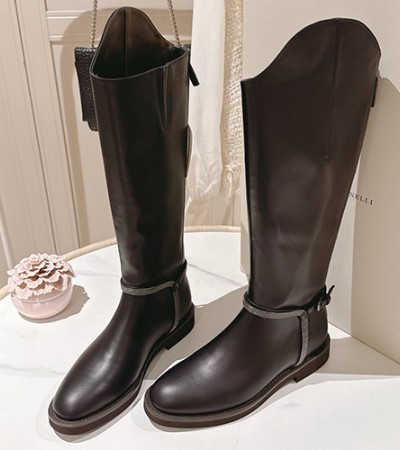 • [홍콩명품.Brunello Cucinelli ] 브루넬로 쿠치넬리 25SS 로고 여성 레더 가죽 구두 부츠 (브라운), SE5728, GHS, 명품스니커즈,운동화,구두,로퍼,하이탑,신발