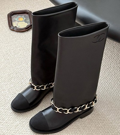 • [홍콩명품.CHANEL] 샤넬 25SS 로고 여성 레더 가죽 3cm 굽 구두 부츠 (블랙), SE5747, GHS, 명품스니커즈,운동화,구두,로퍼,하이탑,신발