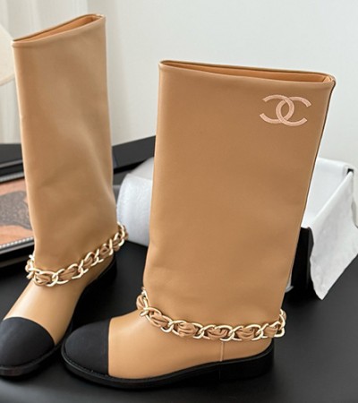 • [홍콩명품.CHANEL] 샤넬 25SS 로고 여성 레더 가죽 3cm 굽 구두 부츠 (베이지), SE5748, GHS, 명품스니커즈,운동화,구두,로퍼,하이탑,신발