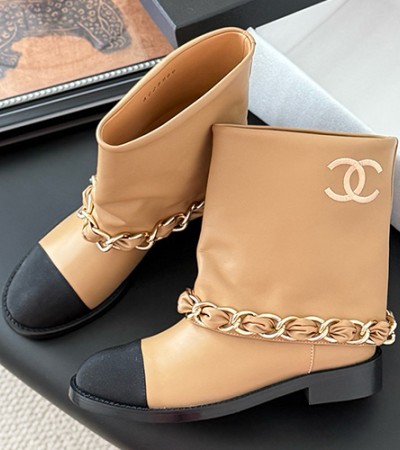 • [홍콩명품.CHANEL] 샤넬 25SS 로고 여성 레더 가죽 3cm 굽 구두 부츠 (베이지), SE5751, GHS, 명품스니커즈,운동화,구두,로퍼,하이탑,신발