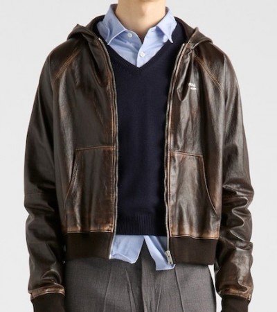 • [홍콩명품,PRADA] 프라다 25SS 로고 레더 가죽 후드 집업 자켓 (브라운), BM22809, TOM, 레플리카의류,미러급사이트