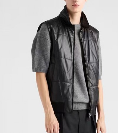 [홍콩명품,PRADA] 프라다 25SS 로고 레더 가죽 다운 패딩 조끼 베스트 (블랙), BM22840, TOM, 레플리카의류,미러급사이트 > 남자의류